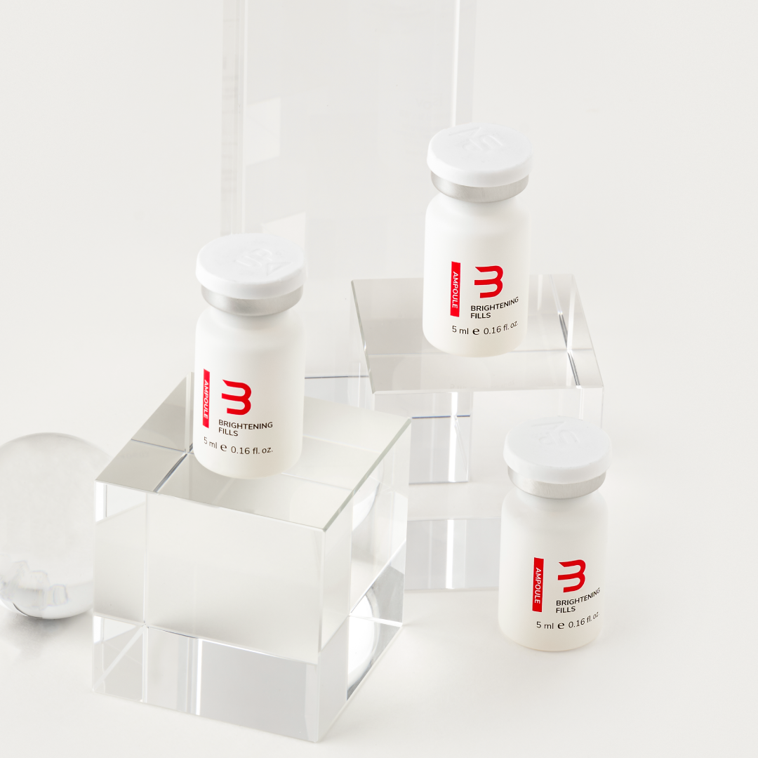 Una ampolla triple relleno de luminosidad que mejora el tono de la piel y el interior y pecas externas con una combinación de glutatión, alfa-visabolol, y ácido tranexámico